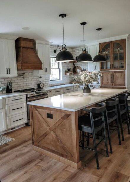 Here are a few more different styles, depending on your color combination, decor, and flooring, you'll want to pick a style that mixes well with your current decor yet giving you a farmhouse feel.